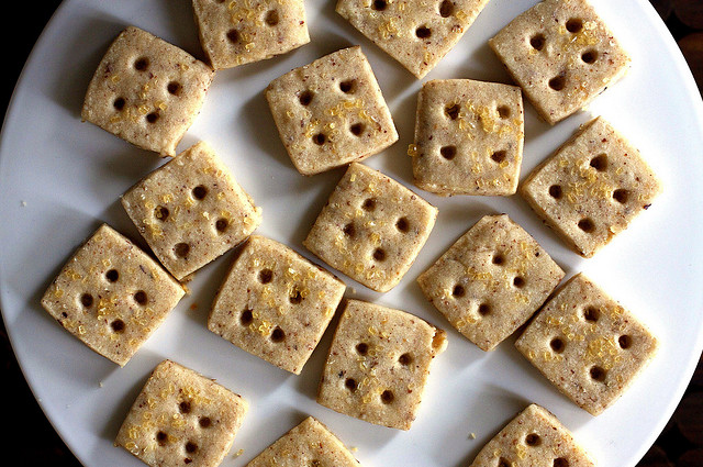 I am, without a better way to put it, swimming in nuts.* Appalled by the price of nuts everywhere around here but insisting that it wasn’t going to keep me from baking with them, I asked my mother out in the ‘burbs — a place where people are less confident they can get away with swindling $9.99 for 1.25 cups of pecans — to see if she could do better. She came back with fifteen pounds for about $30 from Costco, five of walnuts, five of pecan and five of almonds. It is, in a word, awesome.