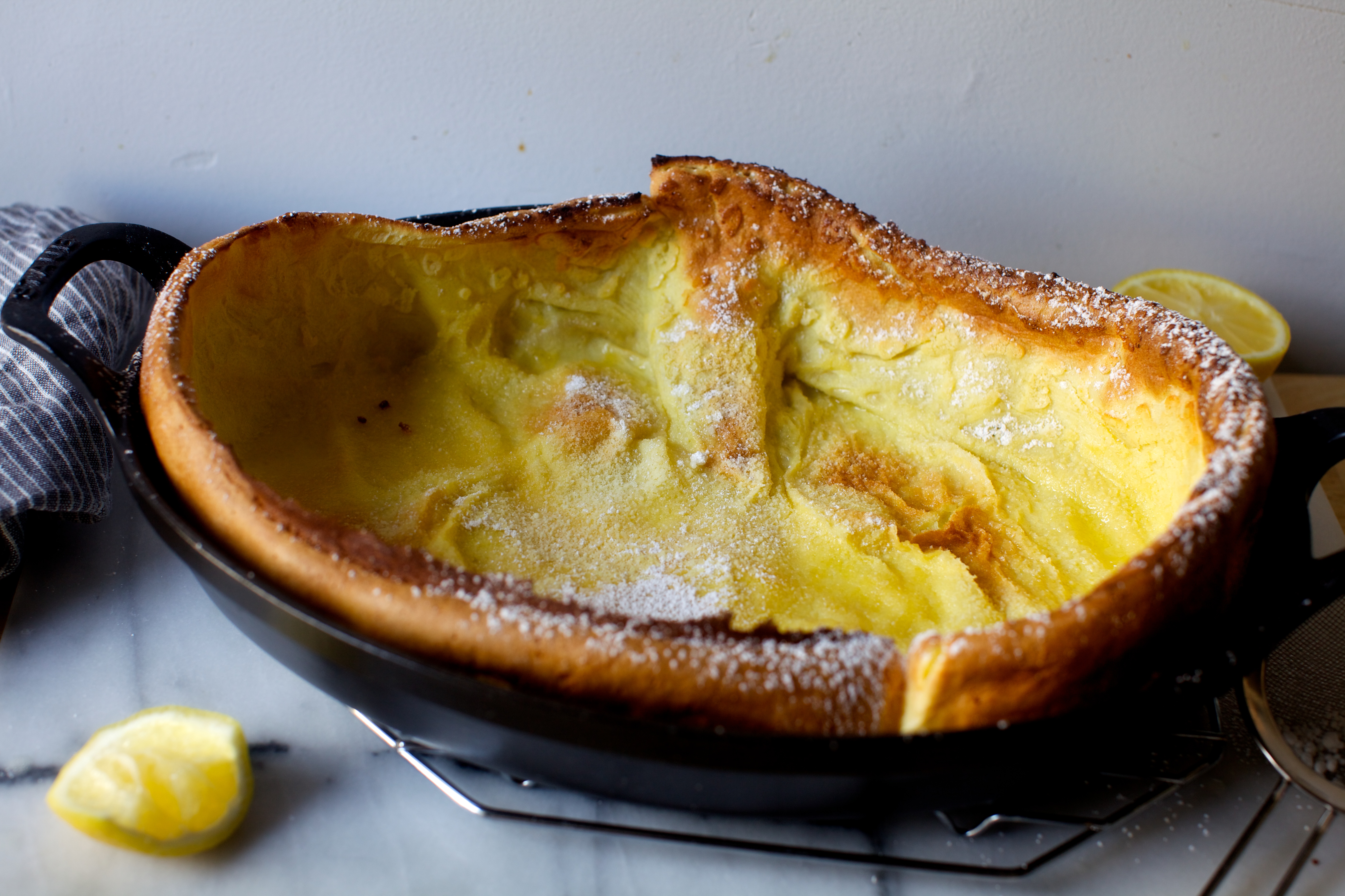 Sometimes “newer, betters” emerge because the original recipe wasn’t as good as it could be. But most of them — like this — come from real life. Like, when you’re really tired on a Saturday morning and you look at a recipe that you swore by at some time in your life when nobody dragged you out of bed at 7am on a Saturday [and then, instead of handing you a cup of coffee for your troubles, as you’d once daydreamed they’d be trained to do by now, demanded pancakes] and say “WHUT.” A blender? No, I am definitely not getting the blender out right now. Wait, why am I turning on the stove and the oven? Do I really need this much butter? Why are there lumps in the batter? Why isn’t this as puffy as I thought it would be? Can I go back to bed yet? I mean, just for a random example that’s definitely not going down in my kitchen as we speak.
