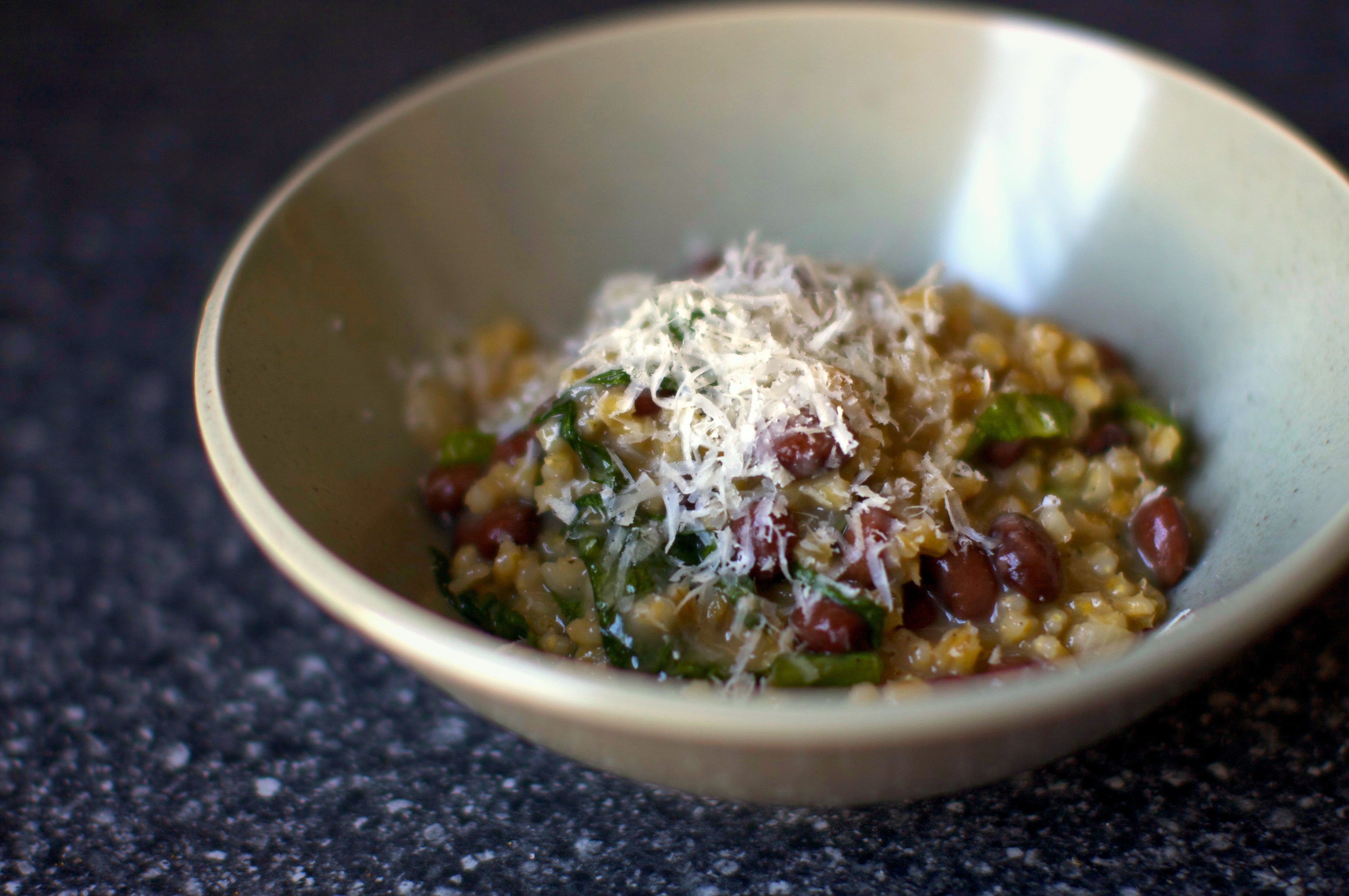 barley risotto with beans and greens